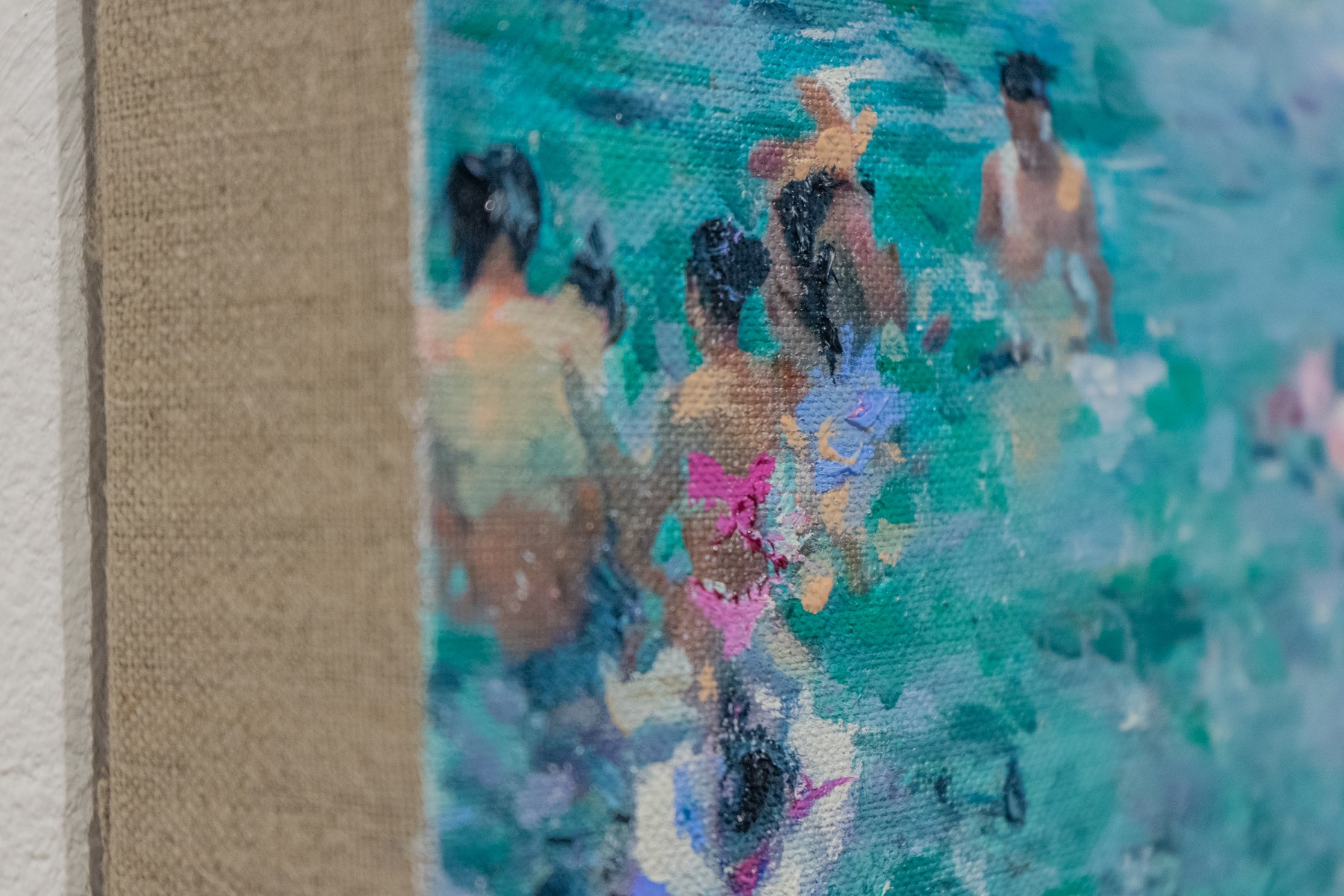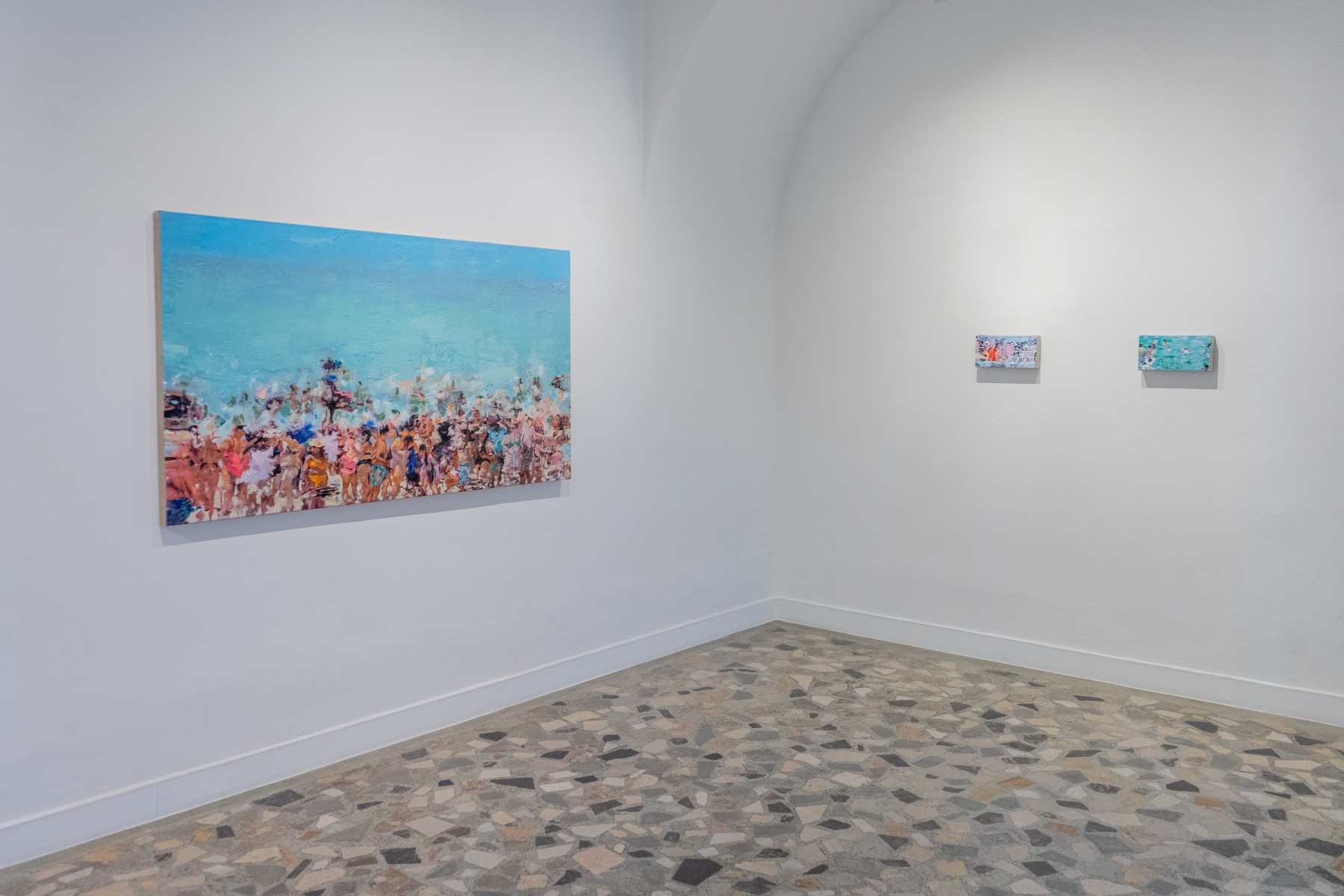 In her new series of paintings, Ava Tribušon Ovsenik interprets the phenomenon of crowds – groups of people – and the field of associations they evoke: the paradox of individualism among the masses, the terror of the hive-mind versus a sense of togetherness, an event as a connective tissue of the community or a consumer product.